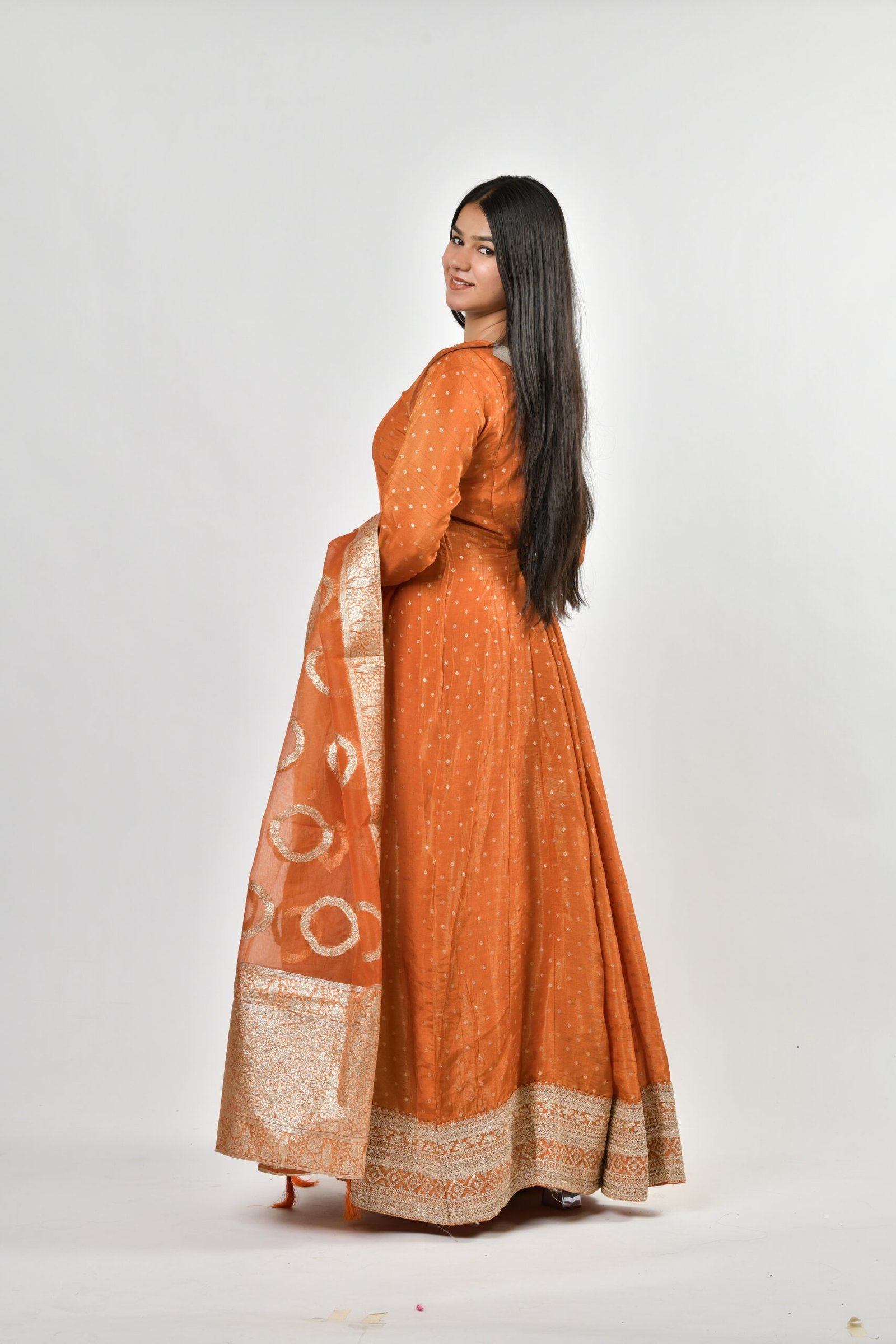 Rust Orange Silk Kurta Set with Banarasi Dupatta