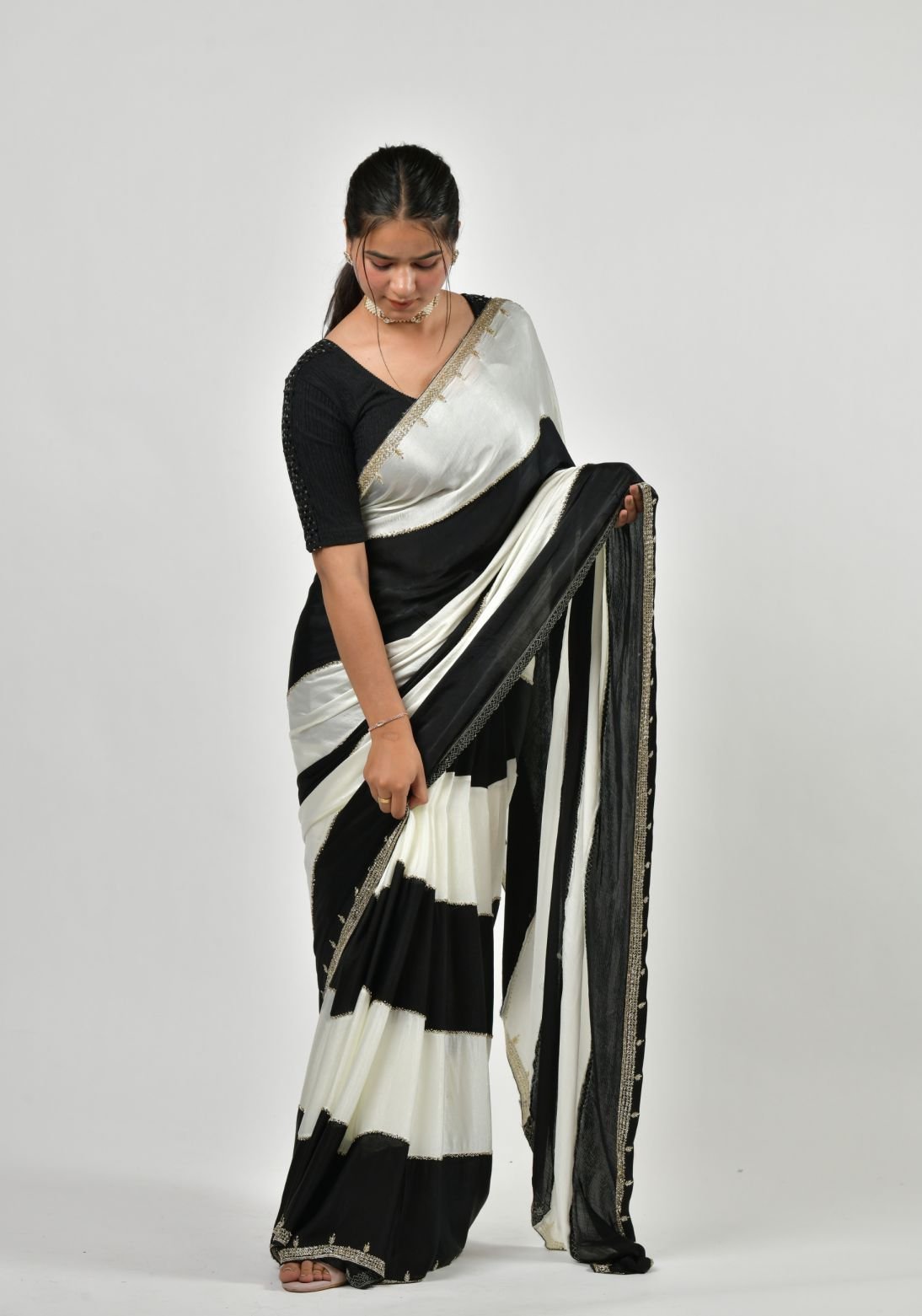 Monochrome black and white Saree