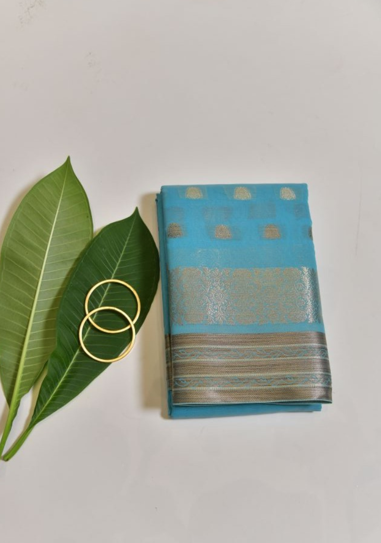 Turquoise with Silver-Golden Zari Border